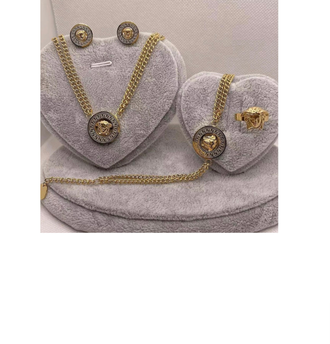 Complete set includes matching, necklace, earrings, bracelet and adjustable ring. Material is of stainless steel.